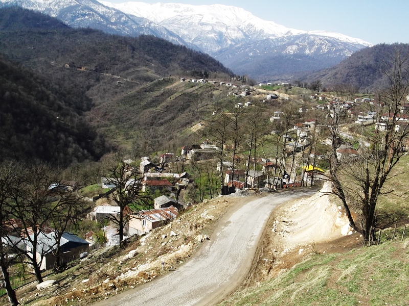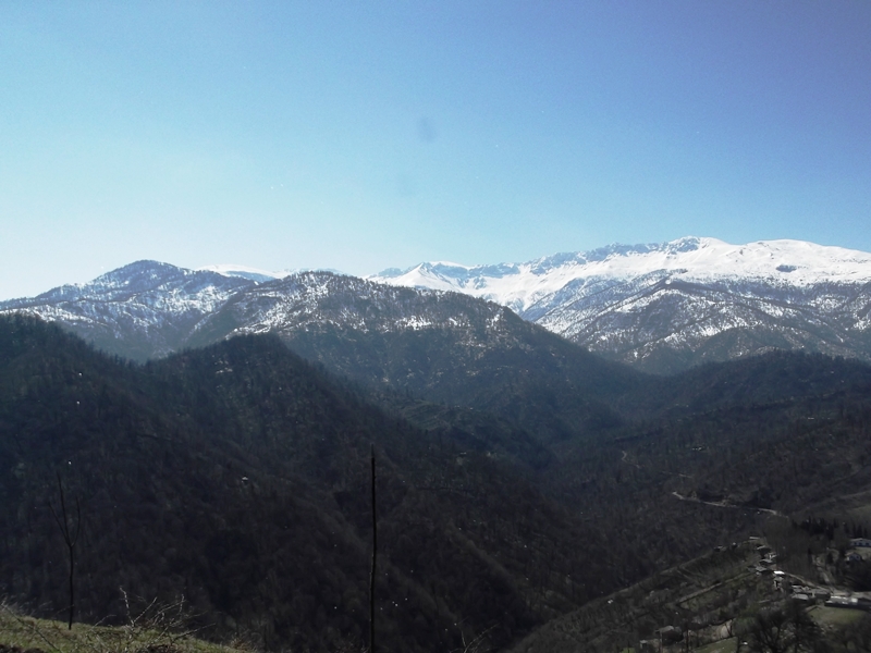 بر بالای تپه آقا بازل [آقا بازو هل: محل بازوی آقا؛ گویا بازوی فردی محترم در آنجا دفن شده است که به درستی هویتش معلوم نشده است و یا حداقل من نمیدانم] ایستادم و از روبروی فیروزجاه، ییلاق گلیران(ییلاق خودمان) عکس را گرفتم.
